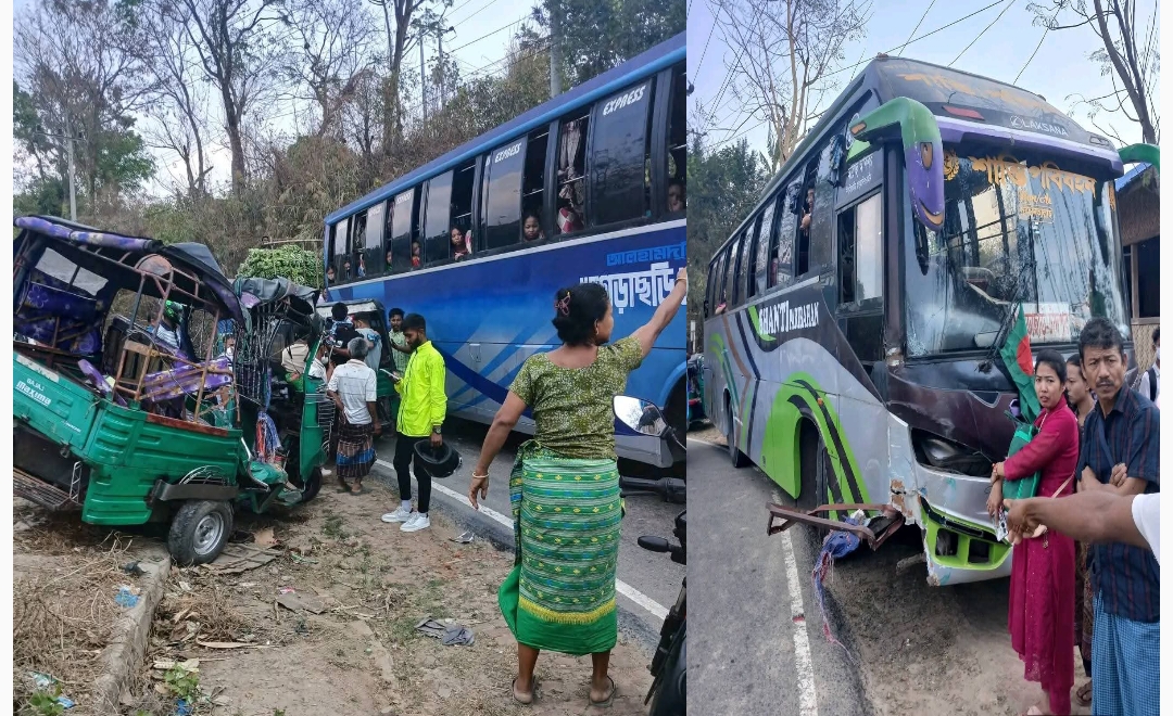 গুইমারায় বাস-ইজিবাইক মুখোমুখি সংঘর্ষ: চালকসহ ৩ জন গুরুতর আহত
