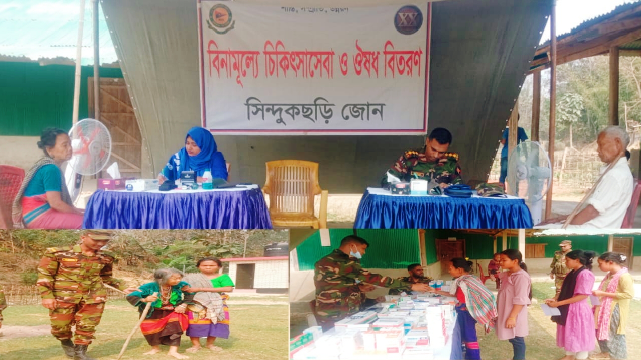 পাহাড়ের দুর্গম জনপদে সিন্দুকছড়ি জোনের মানবিক ছোঁয়া: ২৬৮ জন পেলেন বিনামূল্যে চিকিৎসা ও ঔষধ