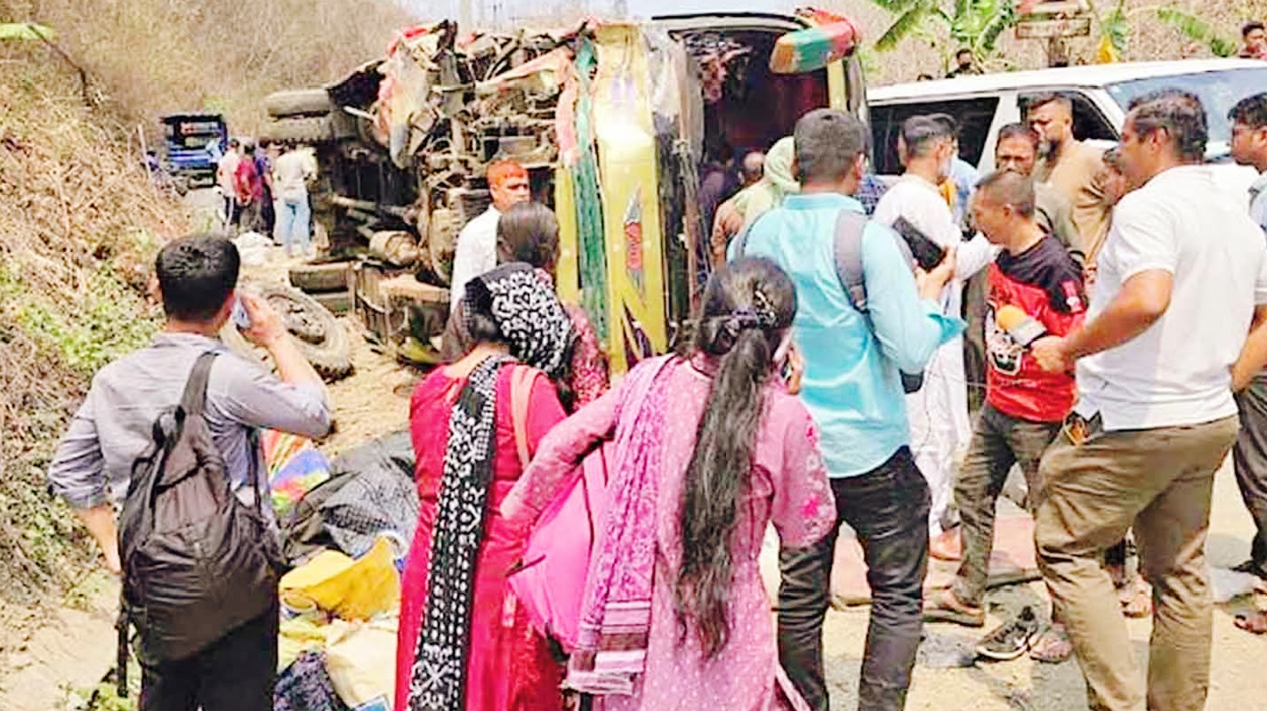রাঙামাটিতে নিয়ন্ত্রণ হারিয়ে শ্রমিকবাহী বাস উল্টে আহত ১৫