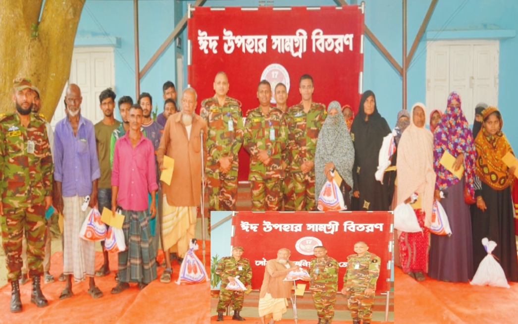 বাংলাদেশ সেনাবাহিনীর নানিয়ারচর জোনের উদ্যোগে ঈদ উপহার সামগ্রী বিতরণ করা হয়েছে। সোমবার দুপুরে নিজ কার্যালয়ে এলাকার অসহায়, দুস্থ্য ও হত-দরিদ্র